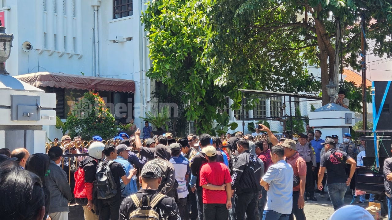 TheJatim.com – Solidaritas Pemuda-Mahasiswa Merah Putih (SPM-MP) Jawa Timur menggelar aksi demonstrasi di depan Balai Kota Surabaya, Kamis (25/9/2025). Dalam aksi tersebut, massa menyoroti dugaan pemborosan dan penyimpangan penggunaan Anggaran Pendapatan dan Belanja Daerah (APBD) Kota Surabaya Tahun Anggaran 2025.