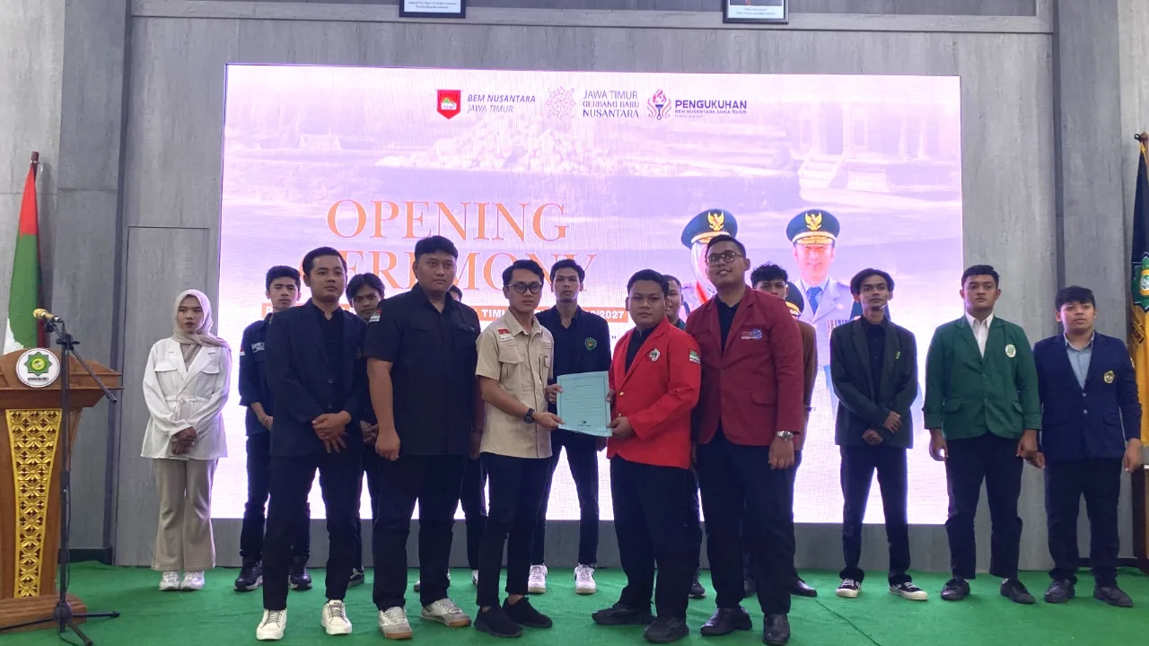 TheJatim.com – Badan Eksekutif Mahasiswa (BEM) Nusantara Jawa Timur resmi mengukuhkan kepengurusan periode 2026–2027 dan langsung mendeklarasikan sikap tegas, yakni mengawal satu tahun kinerja pemerintahan daerah kabupaten/kota se-Jawa Timur. Deklarasi itu disampaikan dalam agenda pengukuhan yang digelar di Universitas Nahdlatul Ulama Sunan Giri, Bojonegoro, 10 Februari 2026.