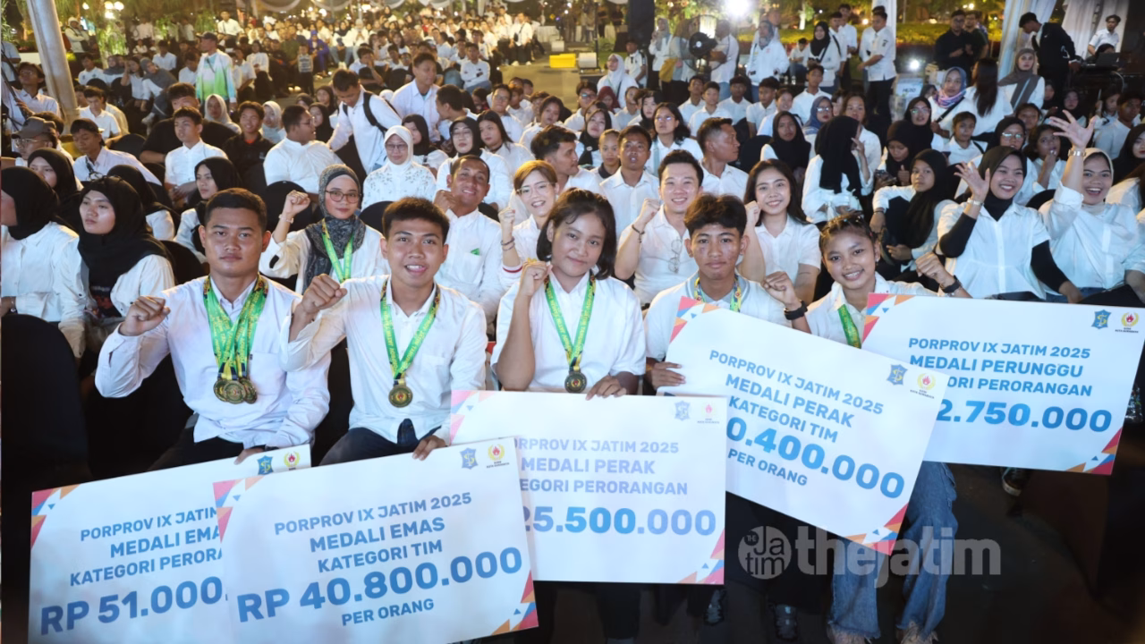TheJatim.com – Pemerintah Kota (Pemkot) Surabaya menyalurkan bonus senilai total Rp42,7 miliar kepada atlet dan pelatih berprestasi yang berhasil mengharumkan nama Kota Pahlawan pada ajang Pekan Olahraga Provinsi (Porprov) IX Jawa Timur 2025.
