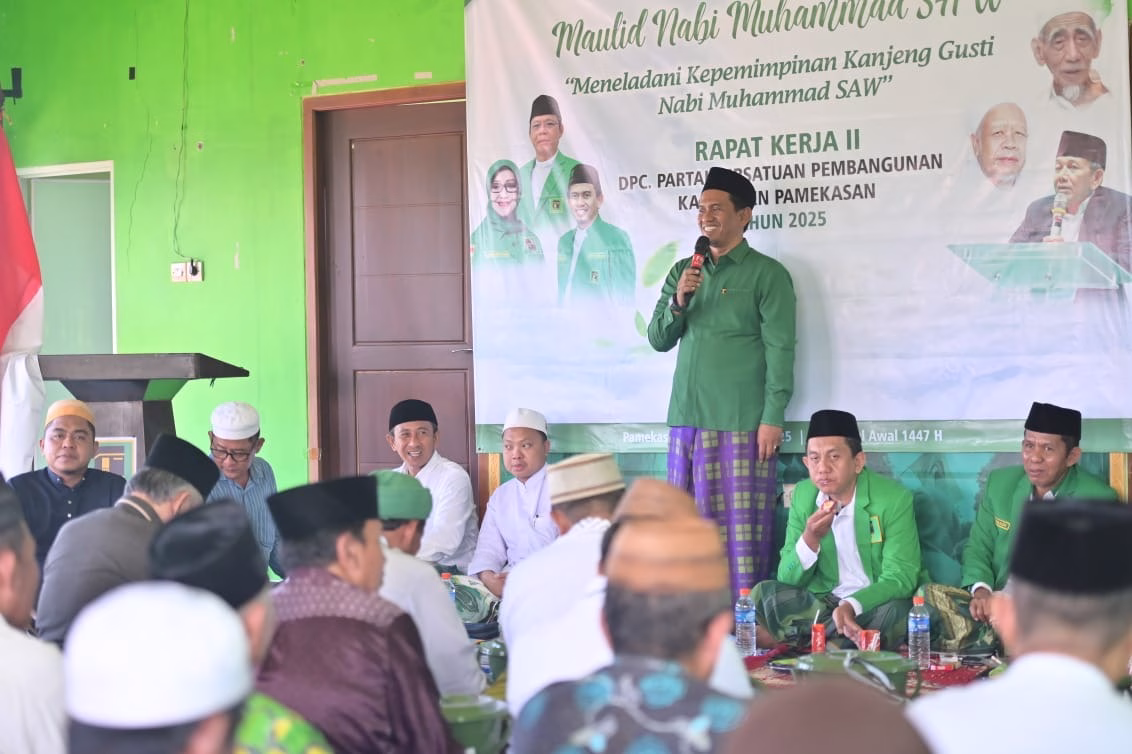 TheJatim.com – Dewan Pimpinan Cabang Partai Persatuan Pembangunan (DPC PPP) Kabupaten Pamekasan, menggelar peringatan Maulid Nabi Muhammad SAW, sekaligus Konsolidasi Pengurus dan Kader di Aula DPC PPP Panekasan, Minggu (14/9/25).