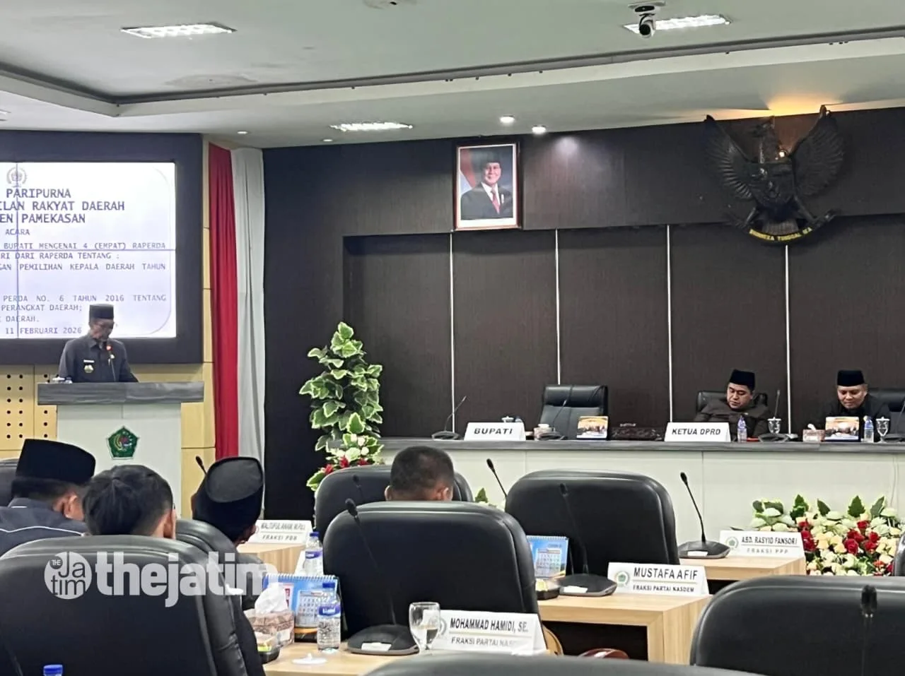 TheJatim.com, PAMEKASAN – DPRD Kabupaten Pamekasanmenggelar Rapat Paripurna pada Rabu (11/2/2026) guna membahas masa depan tata kelola daerah. Agenda utama rapat ini fokus pada penyampaian nota penjelasan Bupati Pamekasan terhadap empat Rancangan Peraturan Daerah (Raperda) Tahun 2026.