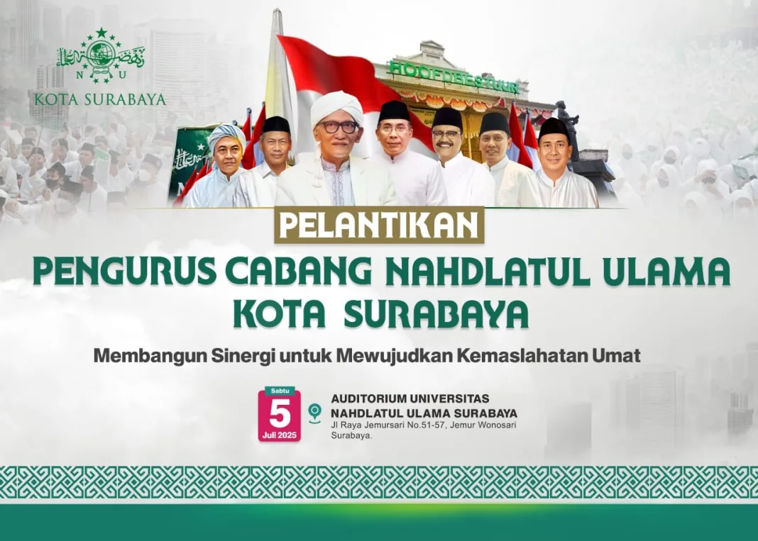 Thejatim.com, Surabaya – Pengurus Cabang Nahdlatul Ulama (PCNU) Kota Surabaya masa khidmat 2024-2029 bakal dilantik hari ini, Sabtu (5/7/2025).