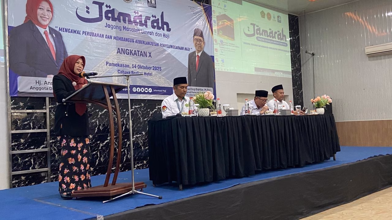 TheJatim.com, PAMEKASAN – Anggota Komisi VIII DPR RI, Hj. Ansari, mendorong agar penyelenggaraan ibadah haji tahun 2026 berjalan lebih baik dari tahun sebelumnya. Hal itu menyusul perubahan kelembagaan nasional, di mana pemerintah secara resmi mengalihkan urusan haji dari Kementerian Agama (Kemenag) ke Kementerian Haji dan Umrah.