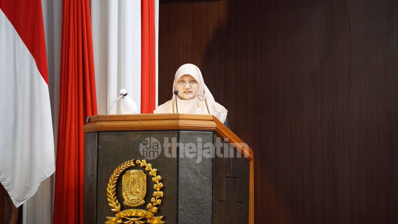 “Pendapatan daerah Jawa Timur diproyeksi turun minus 1,2 persen dibandingkan tahun anggaran 2025. Sementara pertumbuhan PAD hanya 1,8 persen dan pajak daerah naik 2,2 persen, jauh di bawah proyeksi pertumbuhan ekonomi sebesar 4,8 hingga 5,6 persen,” tegas Juru Bicara Banggar DPRD Jatim, Hj. Lilik Hendarwati, dalam rapat paripurna di Gedung DPRD Jatim, Senin (22/9/2025).