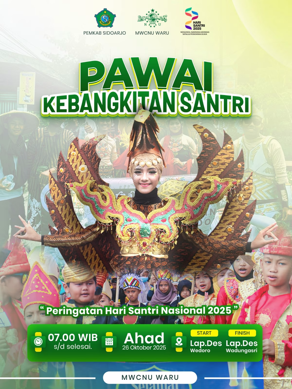 TheJatim.com – Menyambut Hari Santri Nasional (HSN) 2025, Majelis Wakil Cabang Nahdlatul Ulama (MWCNU) Kecamatan Waru, Sidoarjo akan menggelar Pawai Kebangkitan Santri pada Ahad, 26 Oktober 2025. Kegiatan ini diprediksi bakal dibanjiri ribuan peserta dari seluruh desa di Kecamatan Waru.