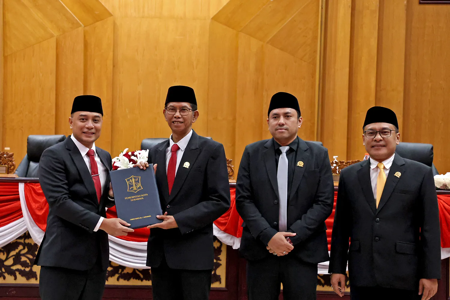 Dokumen tersebut mencakup nota keuangan atas Rancangan P-APBD Tahun 2025 dan Rancangan Peraturan Daerah (Raperda) tentang P-APBD 2025. Dalam kesempatan itu, Wali Kota Surabaya Eri Cahyadi, menyerahkan langsung dokumen nota keuangan P-APBD kepada pimpinan DPRD Surabaya.