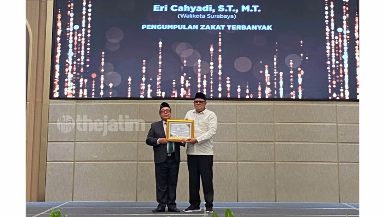 TheJatim.com – Wali Kota Surabaya, Eri Cahyadi, dinobatkan sebagai Kepala Daerah Pengumpul Zakat Terbanyak oleh Badan Amil Zakat Nasional (Baznas) Jawa Timur, Rabu (8/10/2025).