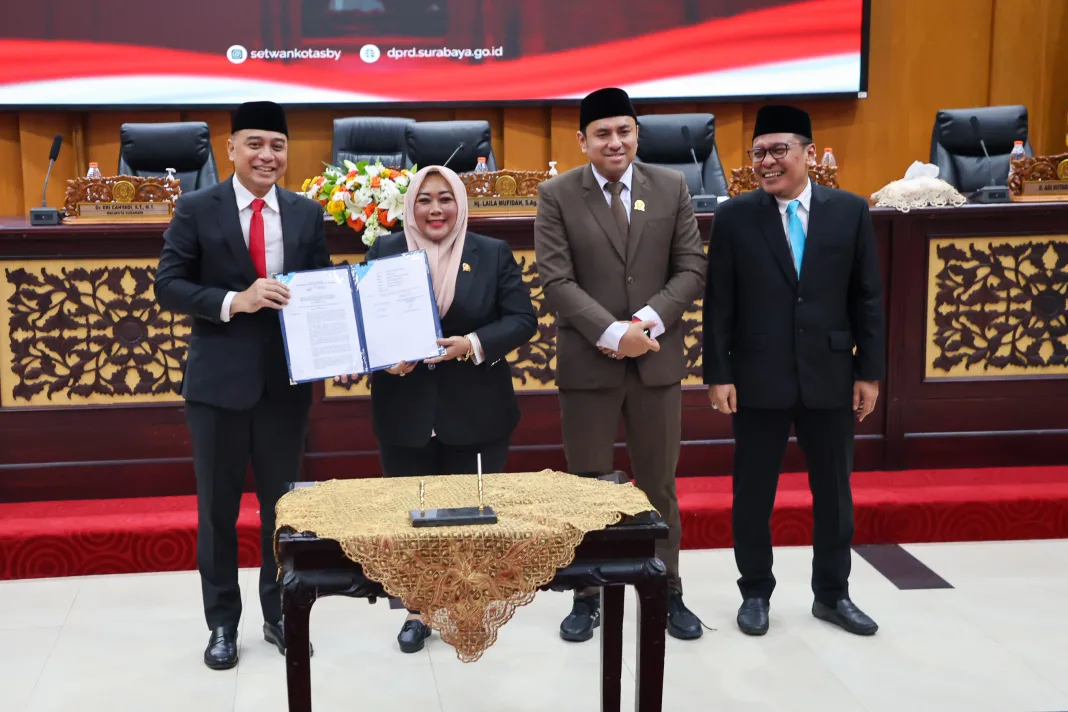 TheJatim.com – Pemerintah Kota Surabaya bersama DPRD resmi mengesahkan Peraturan Daerah (Perda) tentang Hunian Layak dalam rapat paripurna di Gedung DPRD Surabaya, Senin (30/3/2026). Regulasi ini diposisikan sebagai fondasi baru dalam penataan ruang sekaligus peningkatan kualitas tempat tinggal warga, mulai dari aspek keamanan, kenyamanan, hingga kesehatan lingkungan.