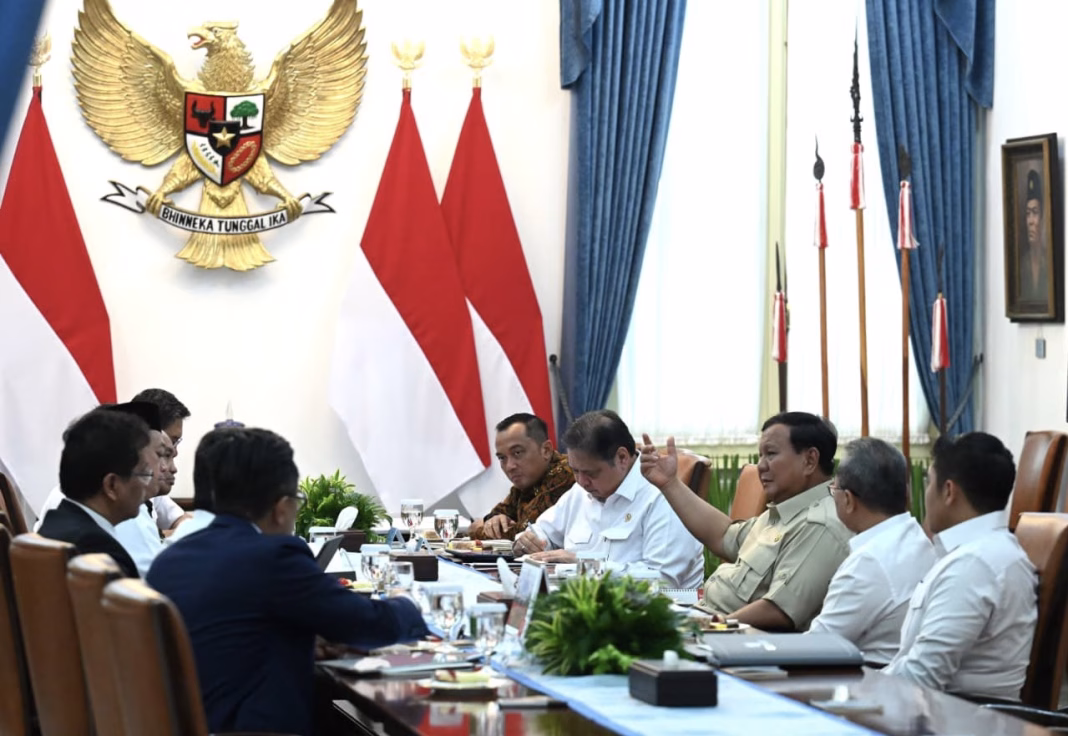 Sebagai informasi, tampak hadir dalam rapat terbatas bersama Presiden Prabowo, di antaranya Menko Bidang Perekonomian Airlangga Hartarto, Mensesneg Prasetyo Hadi, dan lainnya.