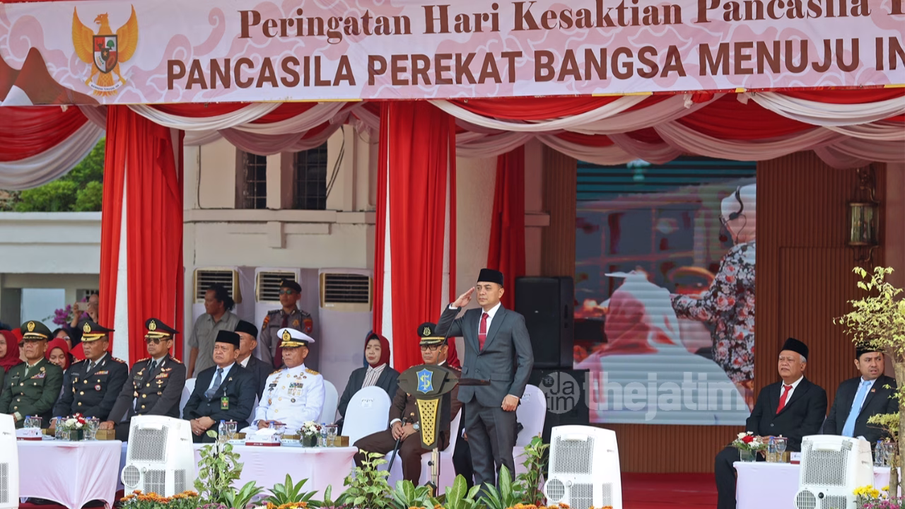 TheJatim.com – Pemerintah Kota (Pemkot) Surabaya menggelar upacara Hari Kesaktian Pancasila 2025 di halaman Balai Kota, Rabu (1/10/2025). Upacara ini dipimpin langsung oleh Wali Kota Surabaya Eri Cahyadi dengan tema “Pancasila Perekat Bangsa Menuju Indonesia Raya.”