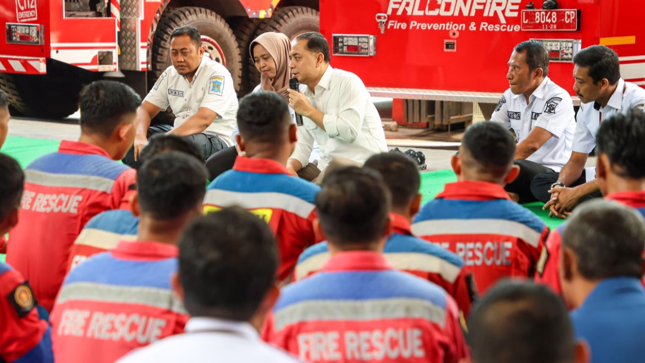 TheJatim.com – Wali Kota Surabaya, Eri Cahyadi, menyampaikan apresiasi dan rasa bangganya kepada jajaran Dinas Pemadam Kebakaran dan Penyelamatan (DPKP) Kota Surabaya. Hal itu disampaikan saat dirinya berkunjung ke kantor DPKP di Jalan Pasar Turi No. 21, Bubutan, Rabu (15/10/2025).